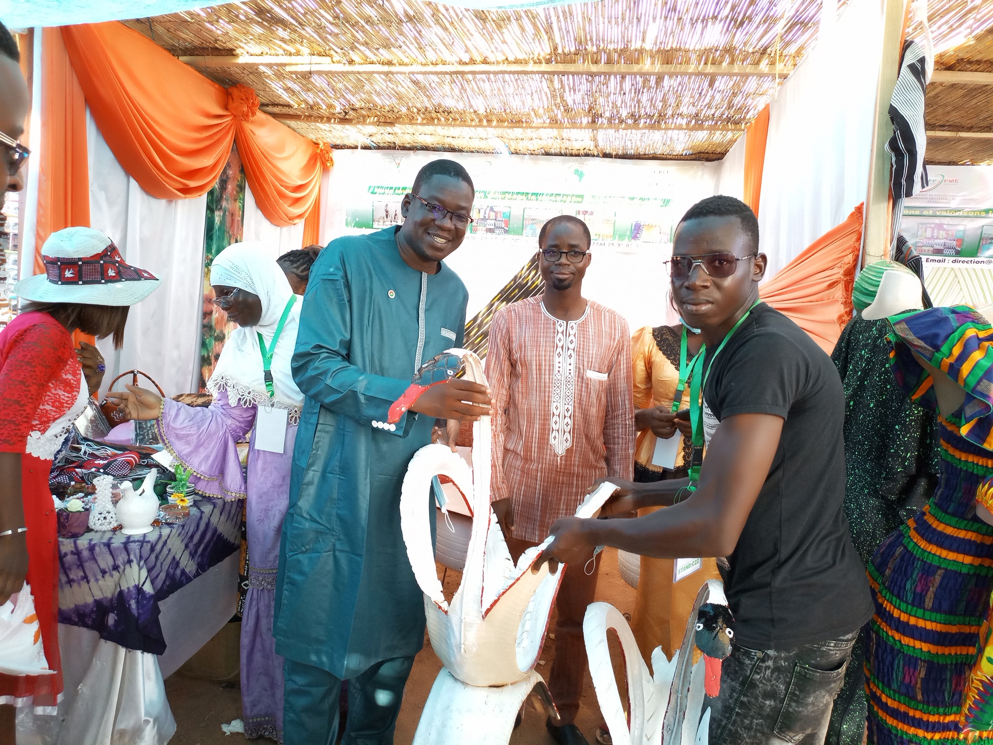 Avec à ses côtés, le Chargé de projet du PADEJ-MR, Monsieur Gambari Hamadou DIALLO, le Directeur Général de l’APEX-Burkina, Monsieur Yacouba DIE et les membres du CODIR, ils ont fait le tour des 12 stands acquis grâce au PADEJ-MR pour permettre aux jeunes de présenter et valoriser leur savoir-faire, et par ricochet, le savoir-faire de leurs différentes régions.