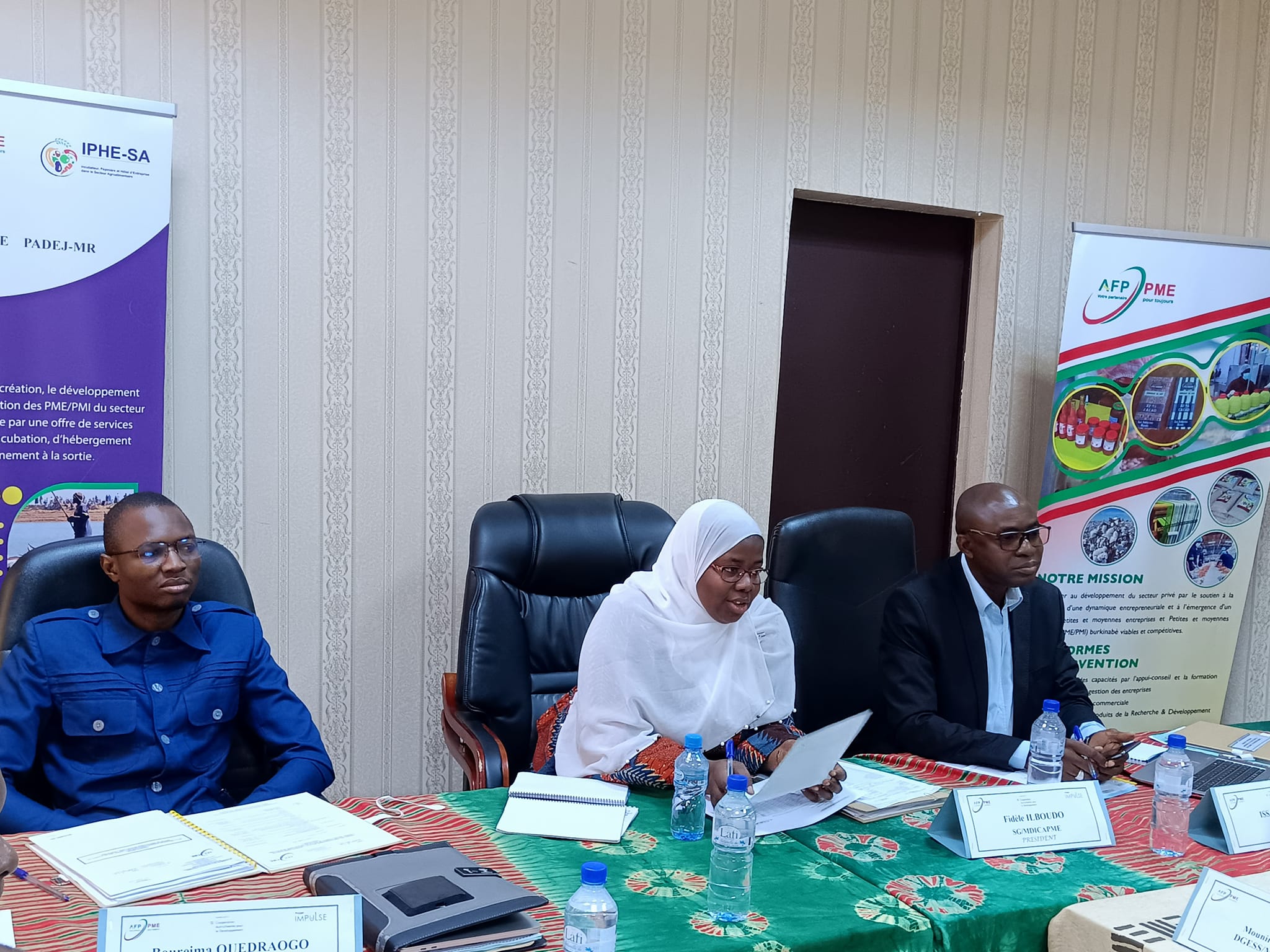 La première session ordinaire du Comité de revue du Programme budgétaire Industrie axée sur le Projet IMPULSE s’est tenu dans la salle de réunion de l’Agence de Financement et de Promotion des Petites et Moyennes Entreprises (AFP-PME), sous la présidence du Secrétaire Général du ministère du Développement Industriel, du Commerce, de l’Artisanat et des PME, représenté par la Directrice des Études et des Statistiques Sectorielles (DGESS), Mme Rakiéta GUIGMA/NABI et en présence du Directeur Général de l’AFP-PME, M. Issa TRAORÉ, Coordonnateur du Projet IMPULSE, du Directeur Général du Développement Industriel, M. Boureima OUÉDRAOGO, Président du Programme Budgétaire Industrie et le représentant de la Coopération Autrichienne, M. OUATTARA.