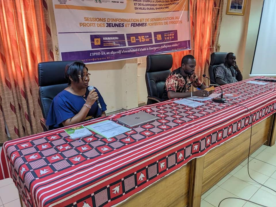 Il s’est agi donc de présenter le PADEJ-MR aux porteuses de projets, créateurs d’entreprises, structures d’encadrement des PME et autres partenaires de mise en œuvre, d’informer les porteuses de projets, créateurs d’entreprises, les structures d’encadrement des PME et autres partenaires locaux de mise en œuvre sur les filières porteuses des localités d’intervention visées par le projet, ainsi que sur les modalités d’accès au processus d’incubation au niveau de l’AFP-PME, les critères de sélection des candidates et les accompagnements prévus, de sensibiliser les différents acteurs afin d’obtenir leur adhésion et de présenter la plateforme de sélection.